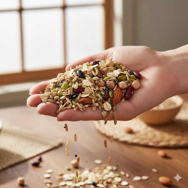 혈당 다이어트라고 해서 탄수화물을 아예 끊을 수는 없잖아요? 우리 몸의 주된 에너지원이니까요. 여기서 중요한 건 '나쁜' 탄수화물을 '착한' 탄수화물로 똑똑하게 바꿔주는 거예요. 나쁜 탄수화물은 주로 정제 탄수화물을 말하는데요, 흰쌀밥, 흰 밀가루로 만든 빵이나 면, 설탕이 가득한 간식들이 대표적이죠. 이런 음식들은 식이섬유가 거의 없어서 소화가 너무 빨라 혈당 스파이크를 일으킵니다. 착한 탄수화물은 복합 탄수화물이라고도 불리며, 현미, 통밀, 귀리, 잡곡처럼 정제 과정을 덜 거친 것들이에요. 이런 음식들은 식이섬유가 풍부해서 소화가 천천히 되고, 혈당을 아주 완만하게 올려준답니다. 혈당 다이어트를 위해 흰쌀밥이나 흰 밀가루 같은 정제 탄수화물 대신 현미, 귀리, 통밀 등 식이섬유가 풍부한 복합 탄수화물을 선택하는 것이 권장됩니다. 탄수화물 먹지 말라는 이야기가 아니라, 똑똑하게 골라 먹자는 뜻이죠!